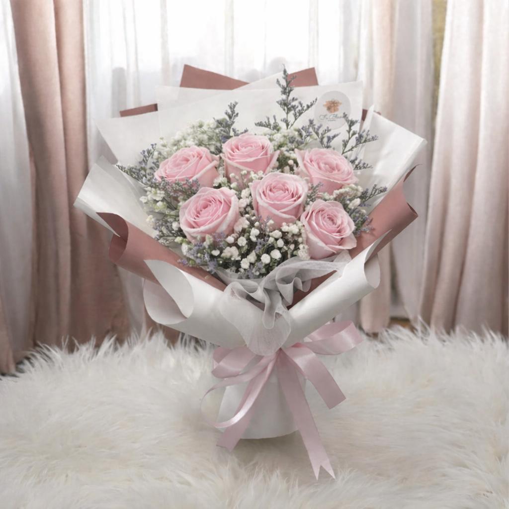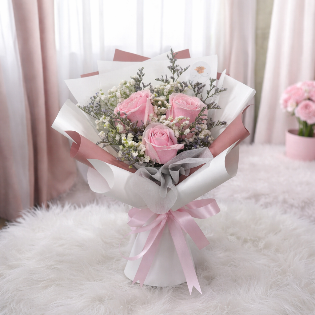 Elegant bouquet featuring fresh, hand-picked roses accompanied with baby breath and caspia, perfect for any occasion. Beautifully arranged to express love, gratitude, or celebration.
