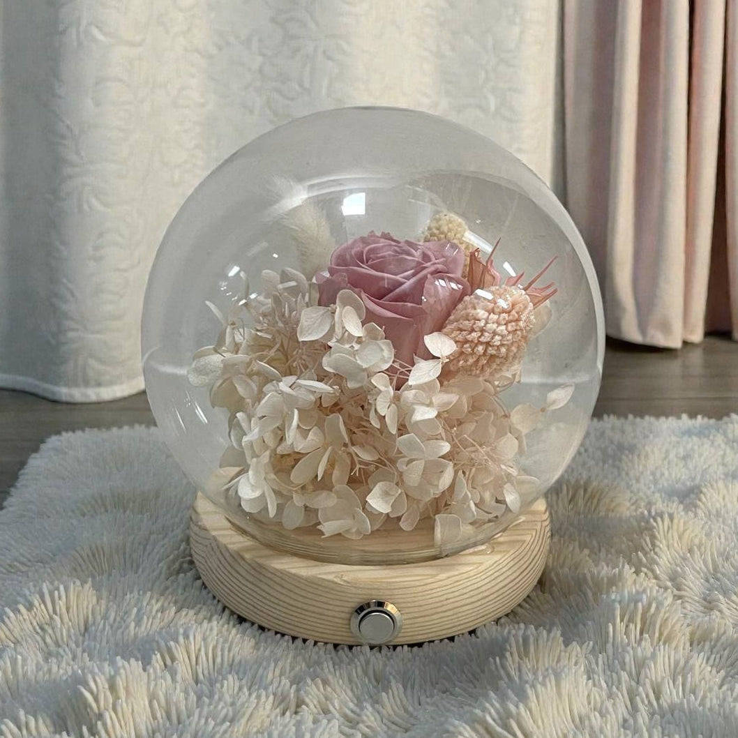 Bring the beauty into your home with our Flower Dome! This stunning preserved flower dome features built-in LED lights