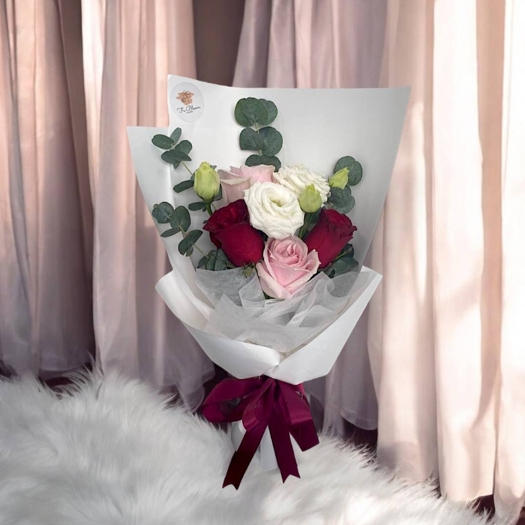 Elegant bouquet featuring fresh, hand-picked Roses and Eustoma, perfect for any occasion. Beautifully arranged to express love, gratitude, or celebration.