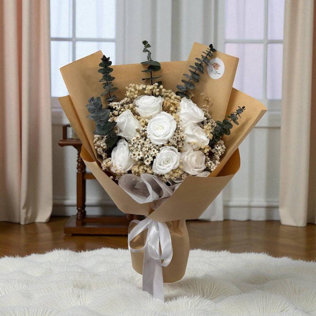 A beautifully arranged mixed preserved bouquet, designed to bring elegance and charm into your space!