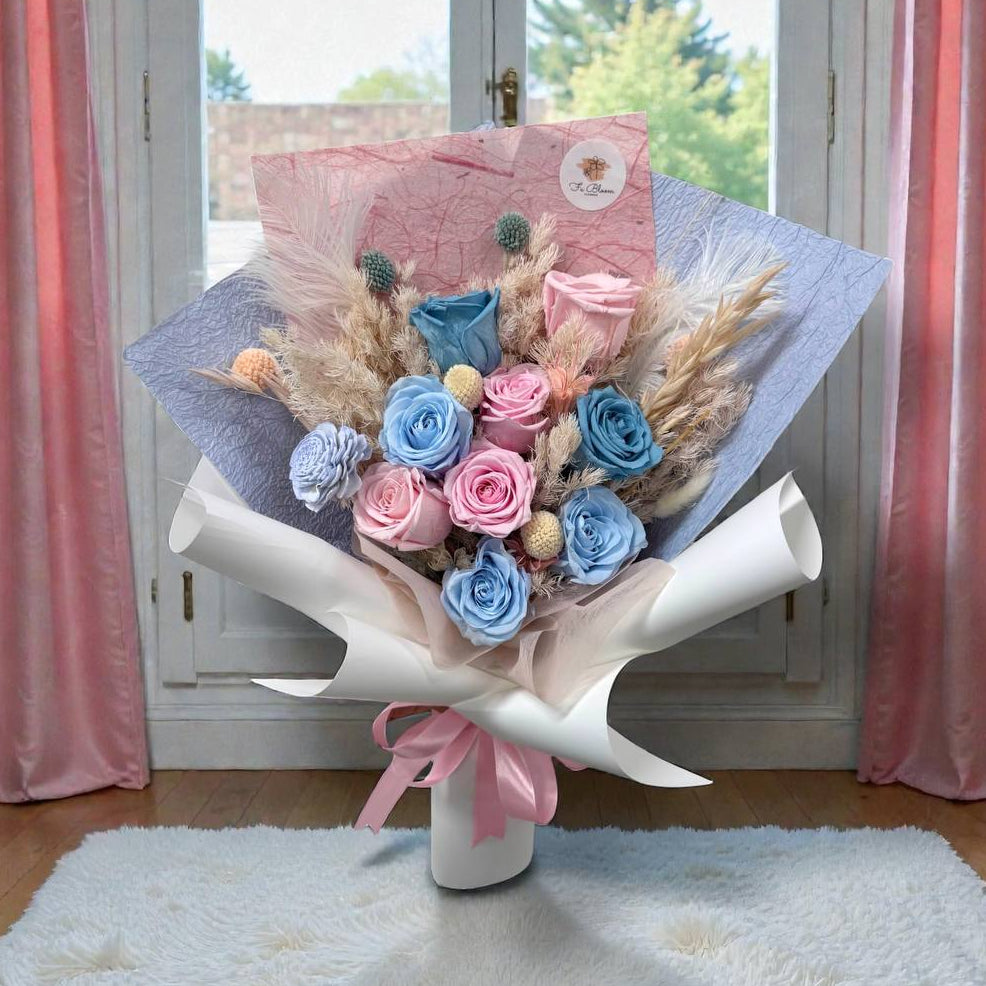 A beautifully arranged mixed preserved bouquet, designed to bring elegance and charm into your space!